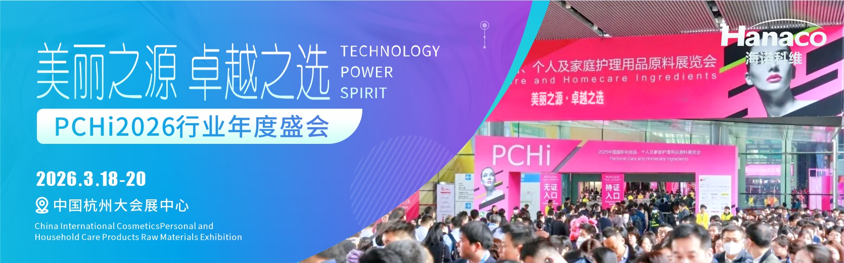 海诺科维诚挚邀请您参加2026年3月18日至20日在中国杭州大会展中心举办的中国国际化妆品个人及家庭护理用品原料展览会(PCHi 2026)。作为全球化妆品、个人护理及家庭护理行业的重要盛会,PCHi 2026将汇聚来自全球的行业精英、顶尖企业及专家学者,共同探讨行业前沿趋势、技术创新及市场机遇。届时我们将携全新天然抗菌系列及明星产品参展,诚挚邀请您来我们展位共同商讨,相信您一定会有所收货,不虚此行!让我们一起携手,共创辉煌。我们在6号馆 6F44 展位恭候莅临!