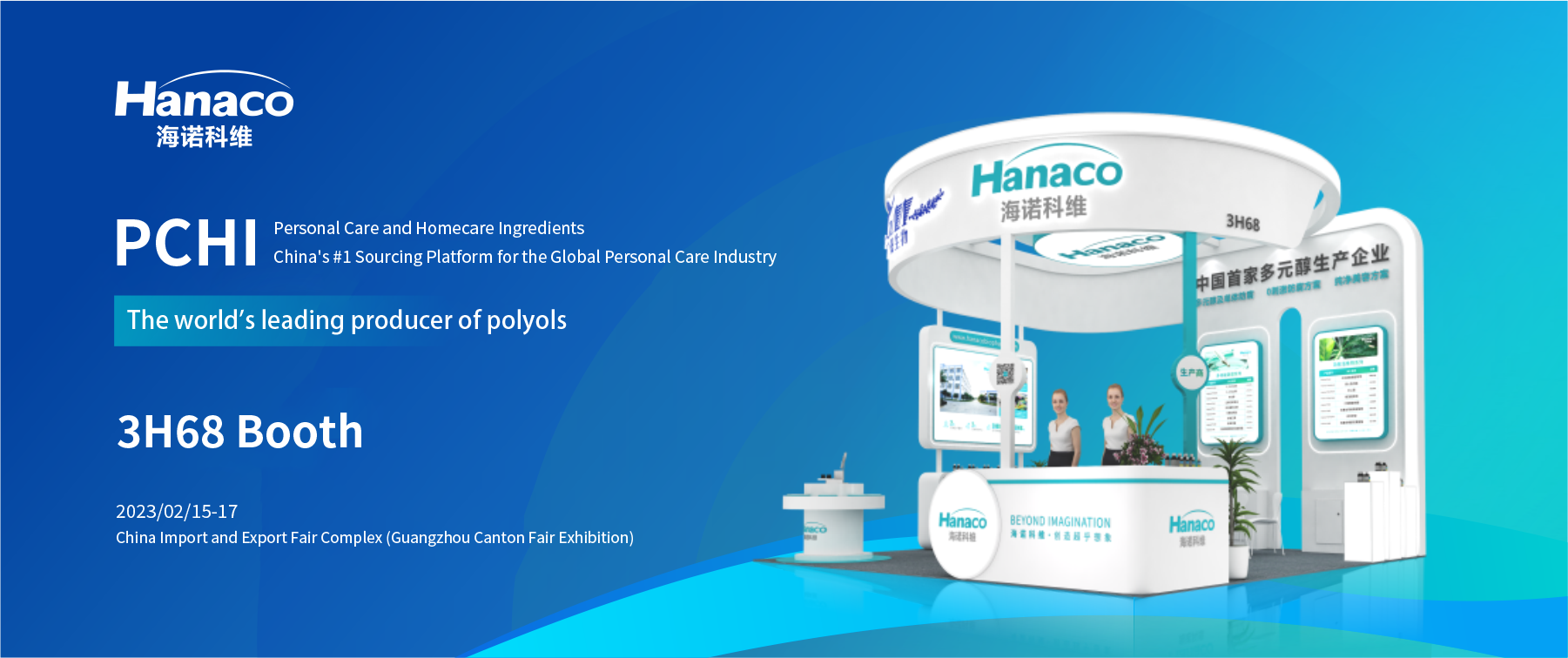 The China International Cosmetic Personal Care & Homecare Ingredients Exhibition (PCHi) will be held at the Canton Fair Complex from February 15 to February 17. Hanaco will showcase its polyol application solutions at the exhibition and cordially invites you to visit the venue!